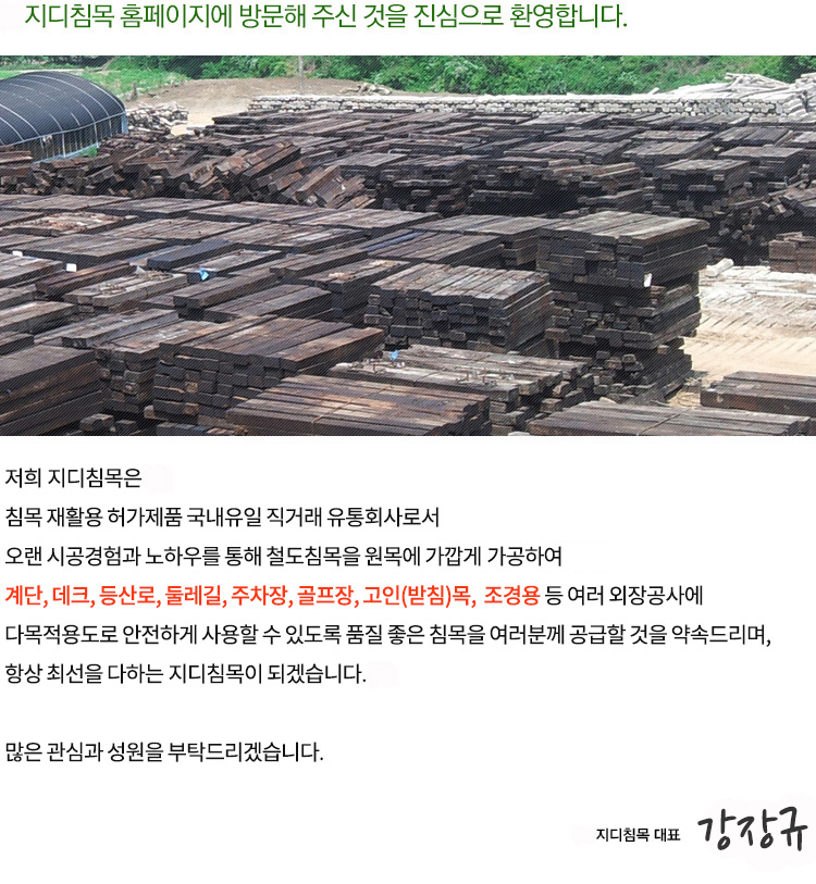 지디침목 사업자번호 : 125-17-22543 대표 : 강장규 주소 : 평택시 진위면 가곡리 528-10